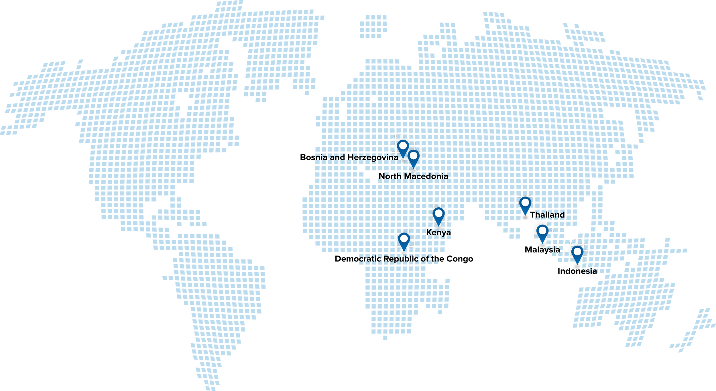 Bosnia and Herzegovina – Democratic Republic of the Congo – Indonesia – Kenya – Malaysia – North Macedonia – Thailand